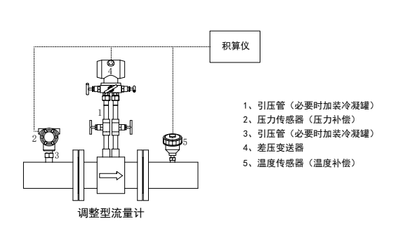 CRT調(diào)整型流量計(jì)分兩種結(jié)構(gòu)——一體式和分體式。一體式由一次阻流(傳感)元件、變送器和閥組組成,分體式除上述部件外還增加了引壓管線。