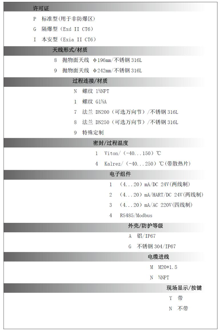 應 用: 固體料位、過程容器、強粉塵、易結晶、結露場合